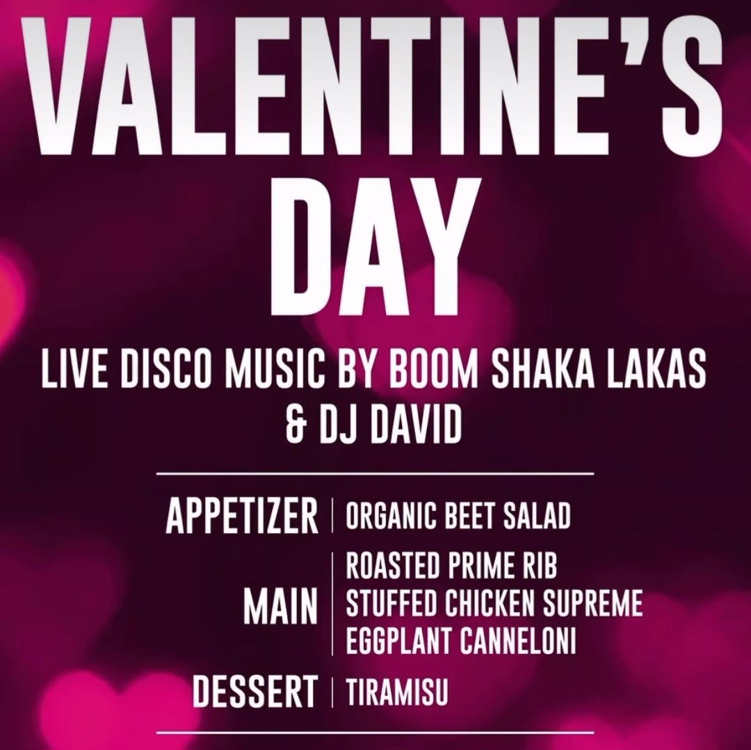 Enjoy a 3-course Valentine’s dinner. Dance to live disco & DJ David.
